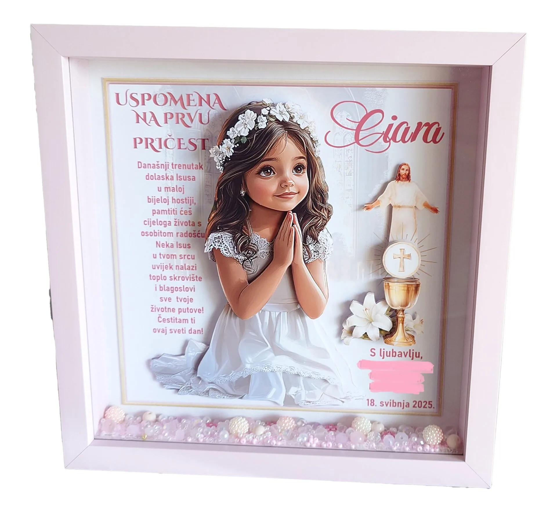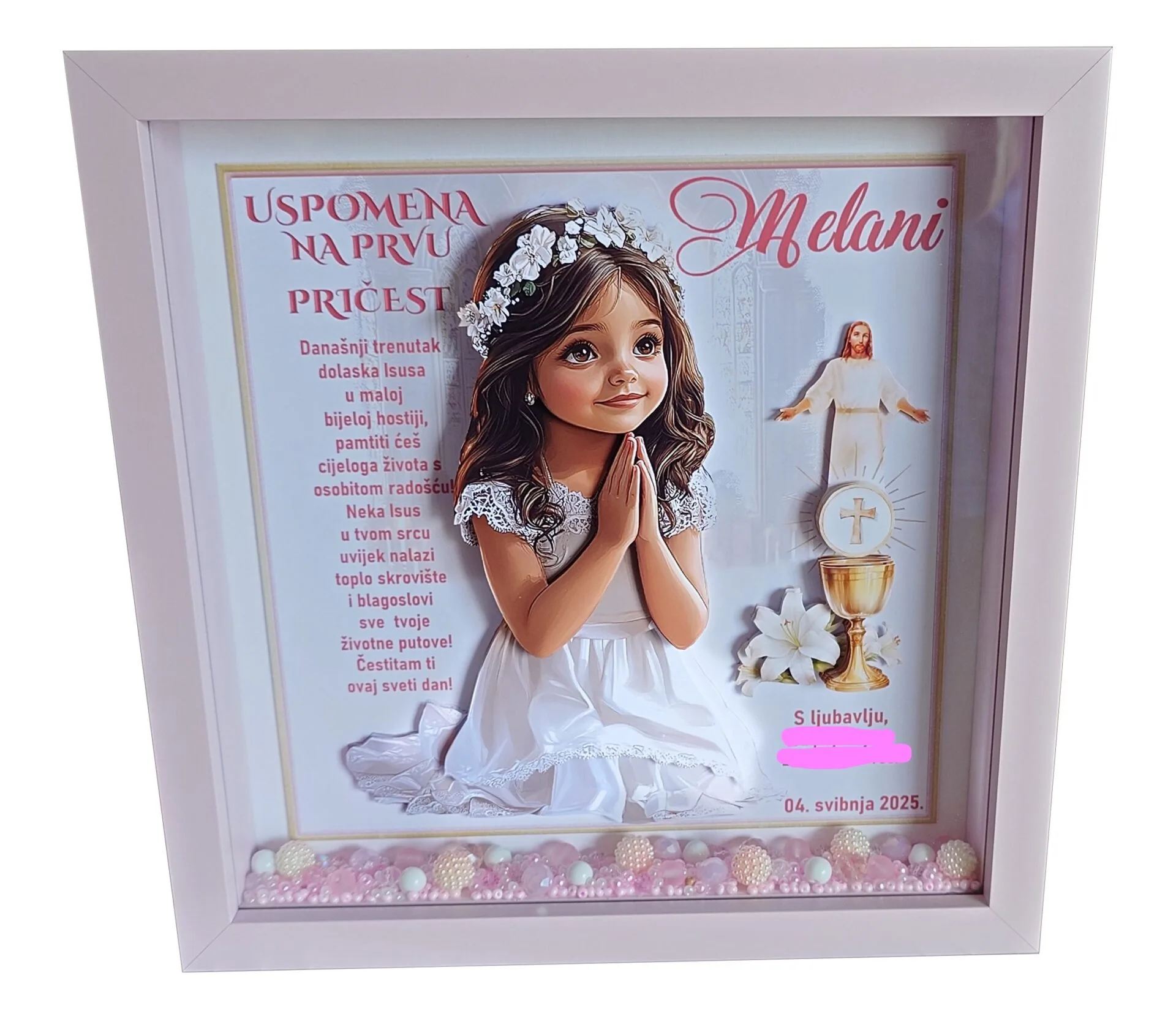 Ključne riječi: prva pričest, djevojčica, sakrament, okvir